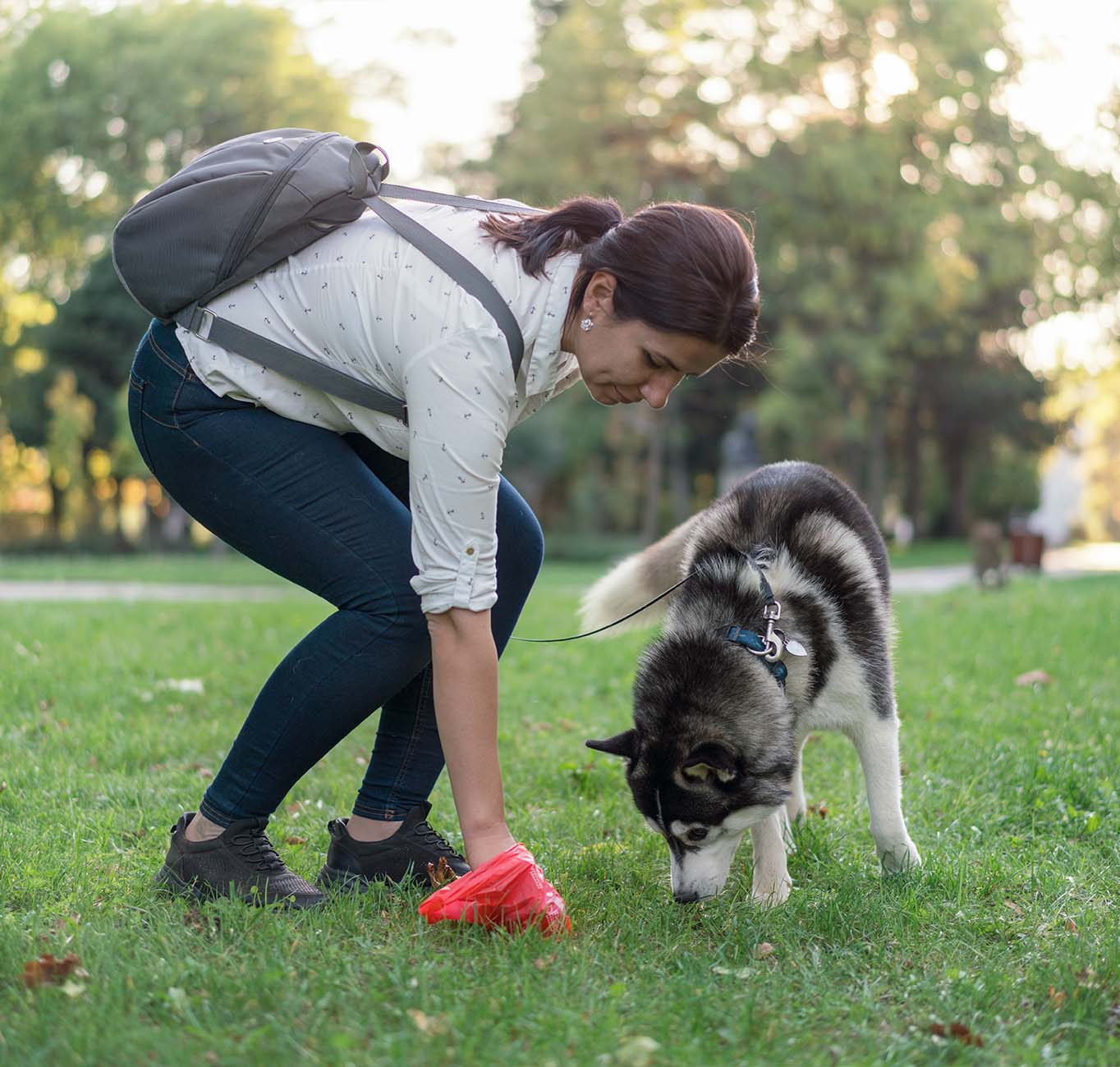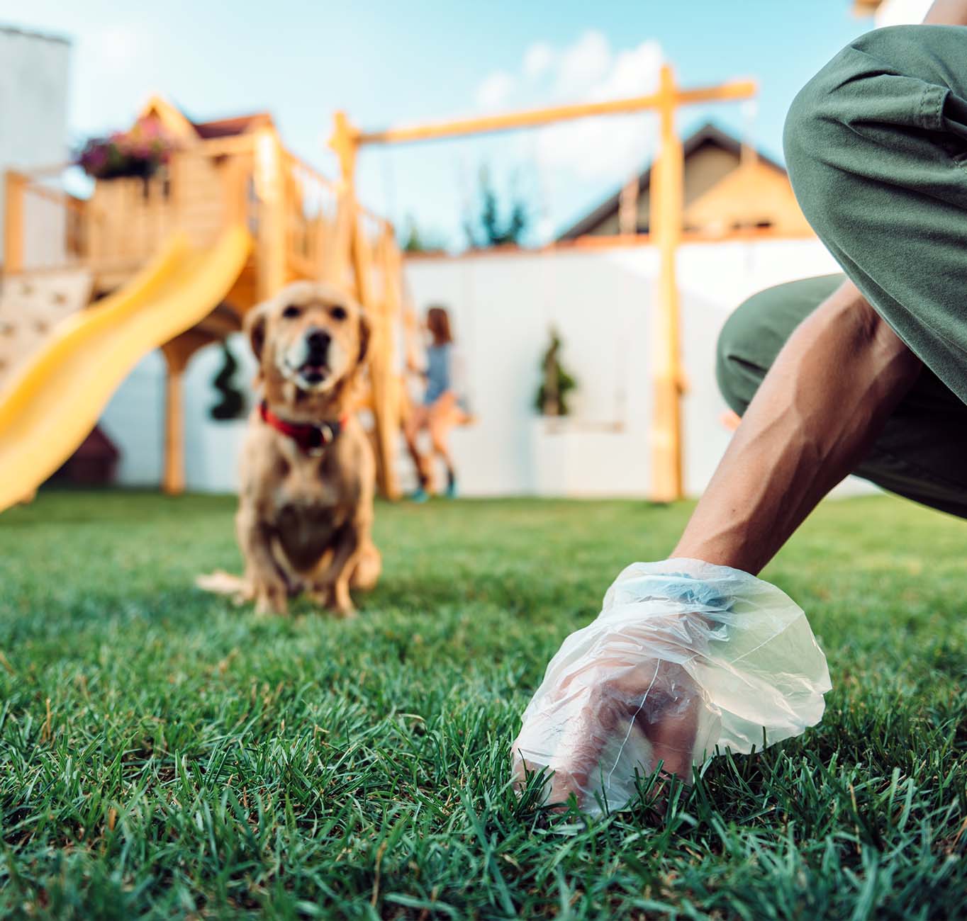 Recolha os dejetos e vire o saco do avesso.
